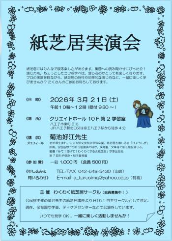 文化・スポーツ公開日:2026年03月10日紙芝居実演会開催日:2026年03月21日(土)
