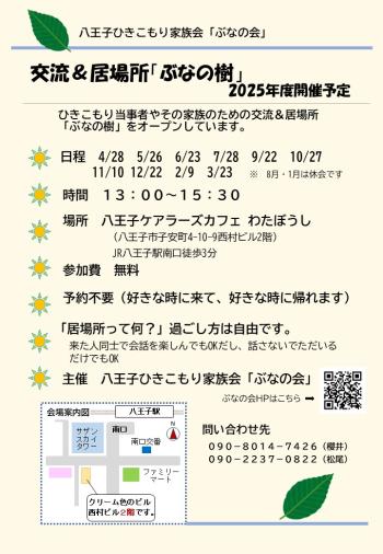 ひきこもり当事者やその家族のための交流&居場所「ぶなの樹」をオープンしています。