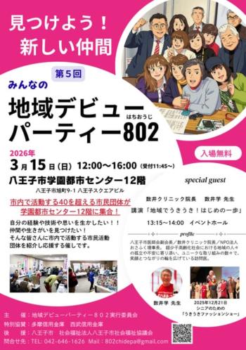保健医療福祉公開日:2026年02月20日みんなの地域デビューパーティー802開催日:2026年03月15日(日)