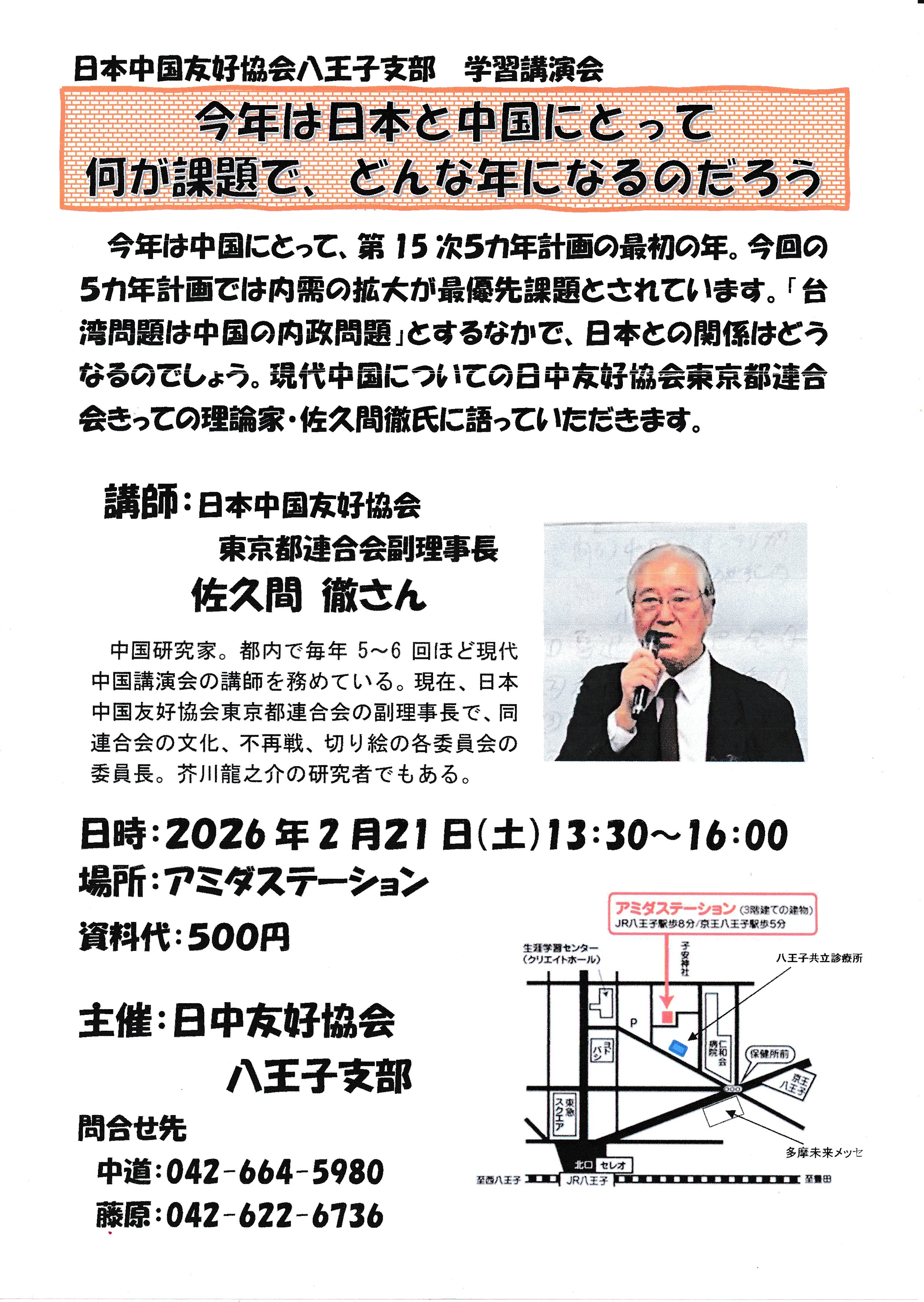 この情報は、「日本中国友好協会 八王子支部」により登録されました。