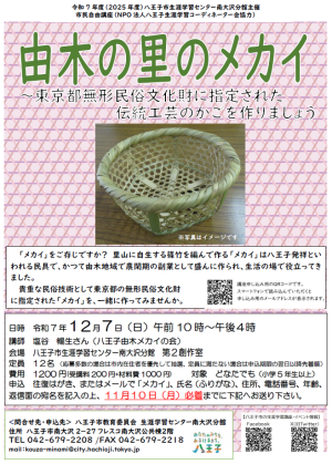 5月17日から3回にわたり、八王子市教育委員会が主催する「令和7年度(2025年度)生涯学習コーデ...