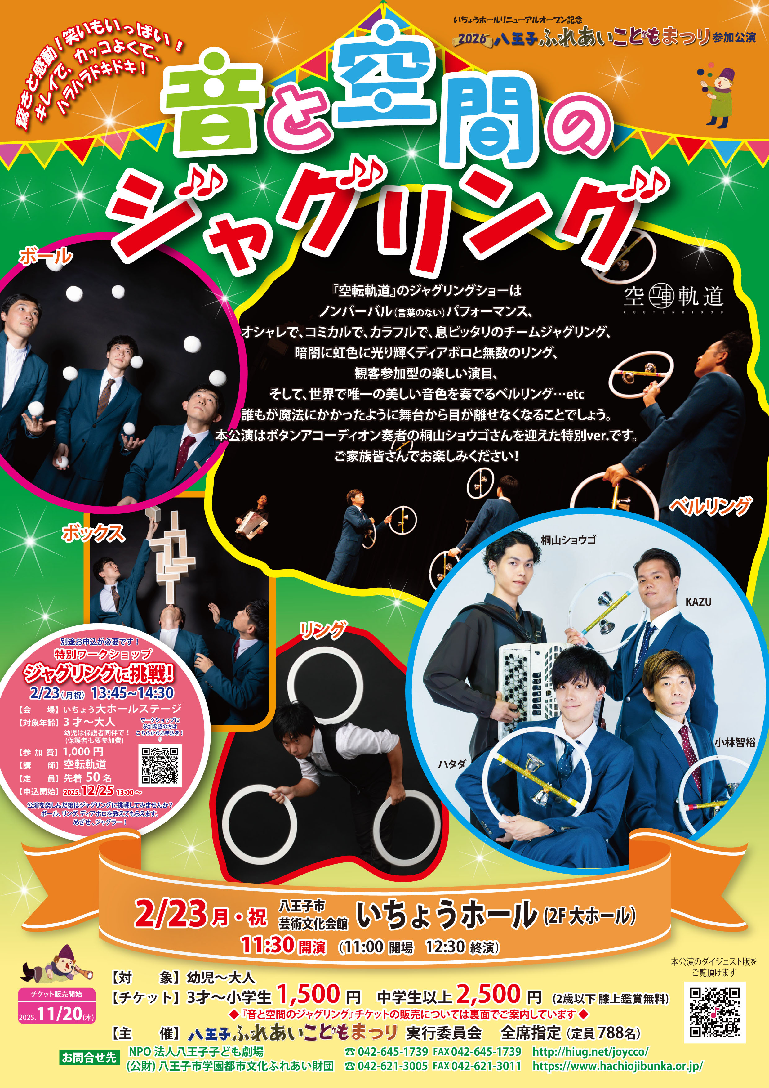 公演の後、ジャグリングのワークショップもあります。申込みが別に必要です。