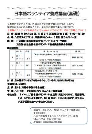 日本語ボランティア養成講座(ブラッシュアップ)イベント終了