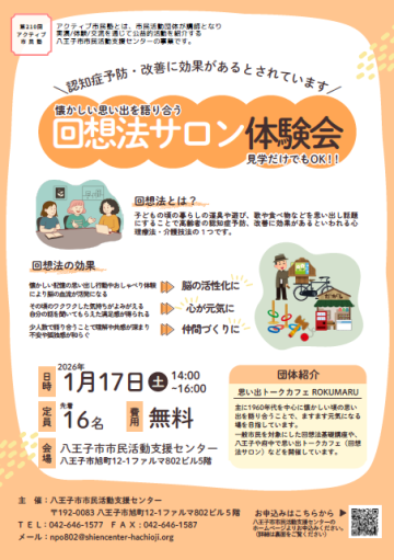 | イベント・講座名 | 【アクティブ市民塾】回想法サロン体験会 |