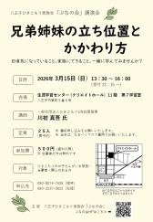 2026/3/15 (日) 「兄弟姉妹の立ち位置とかかわり方」