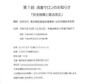 第1回 改憲サロンのお知らせ「安全保障と憲法改正」