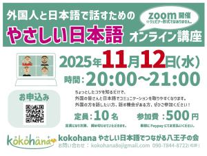 2025年11月12日(水)やさしい日本語 オンライン講座(1時間)を実施します!