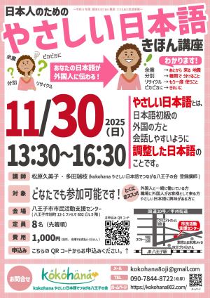 2025年11月30日(日)『やさしい日本語きほん講座(3時間)』を実施します。