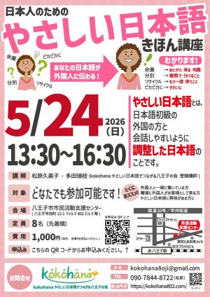 2026年5月24日(日)『やさしい日本語きほん講座(3時間)』を実施します。