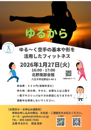 12月のゆるから定期講座を開催します。無理なく続けられる運動で、寒い季節も元気に過ごしましょう。初心...
