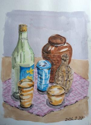 ’26- 2月 22日 (日)らく彩会は 、室内にて「酒器さまざま」を描きました。