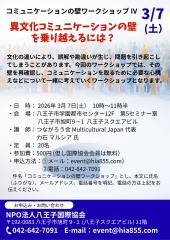 3月7日、「NPO法人八王子国際協会」主催の「コミュニケーションの壁ワークショップIV」で「異文化コ...