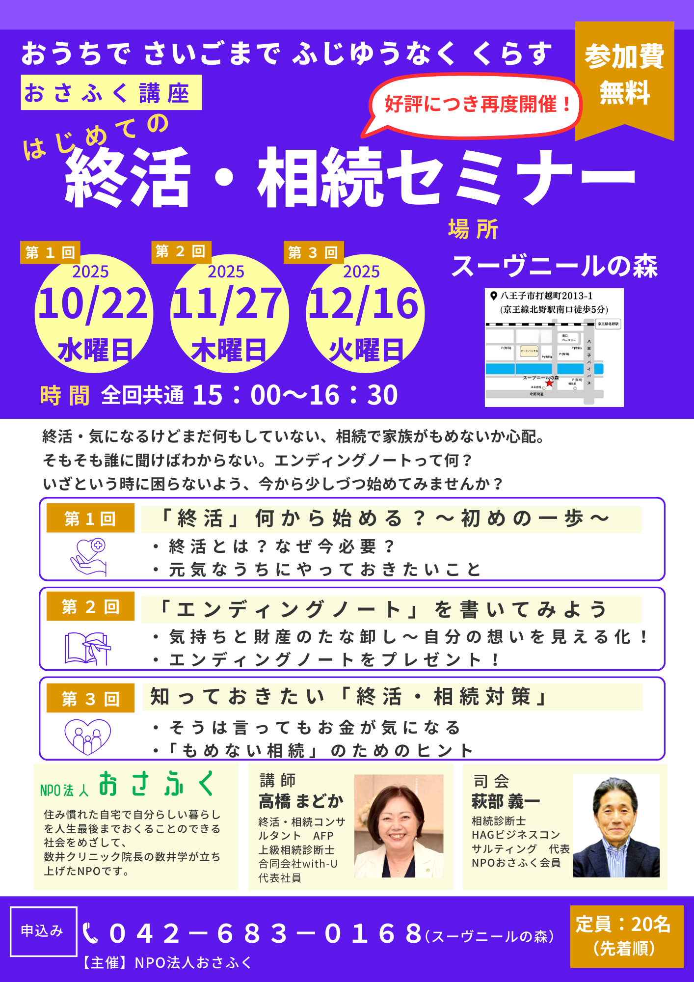 7月~9月に開催した講座が好評だったため、同じ内容で10月~12月に再度開催します!