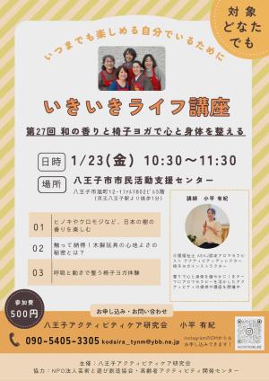 第27回いきいきライフ講座「和の香りと椅子ヨガで心と身体を整える」イベント終了