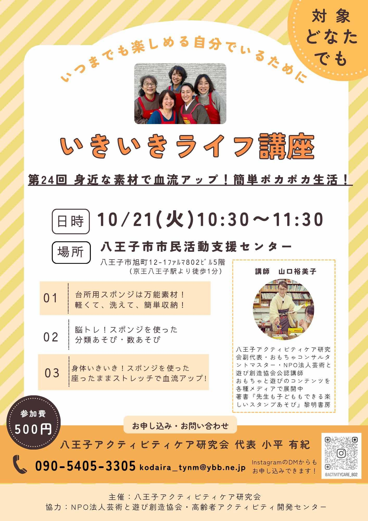 イベント・講座名 | 第24回いきいきライフ講座「身近な素材で血流アップ!簡単ポカポカ生活!」 |