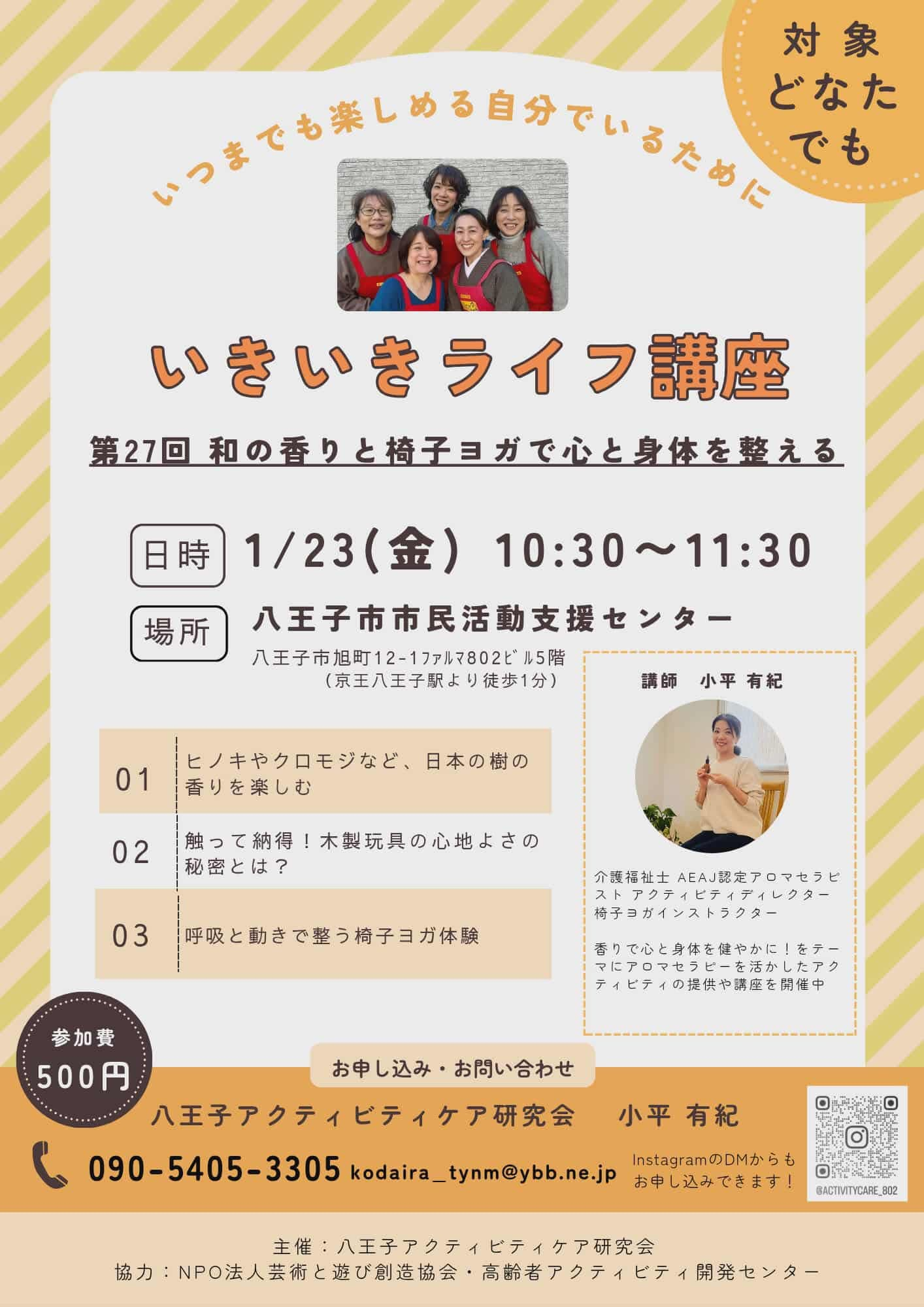 第27回いきいきライフ講座「和の香りと椅子ヨガで心と身体を整える」
